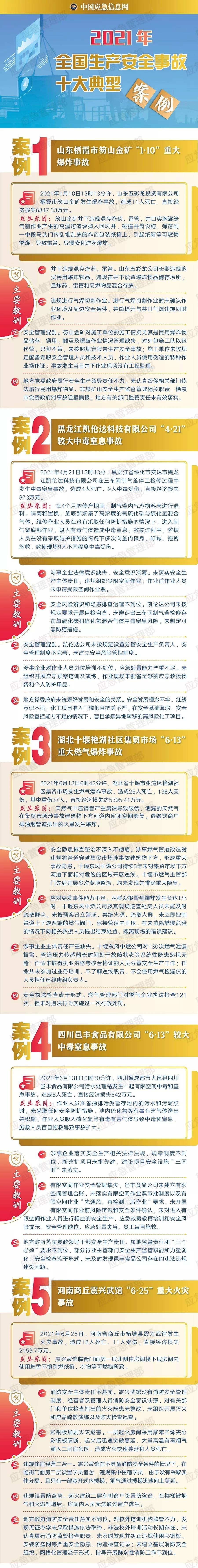 應急管理部公布2021年全國生產安全事故十大典型案例